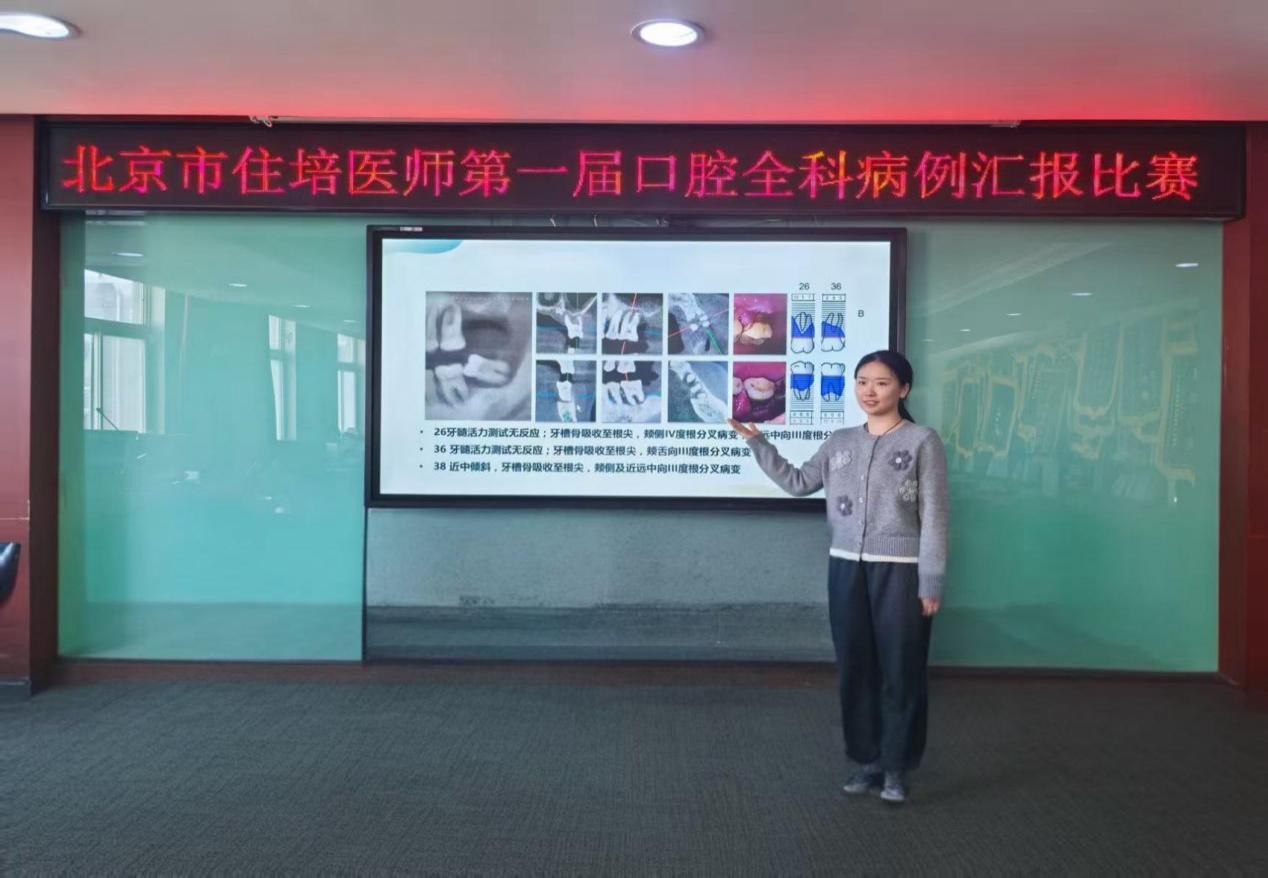 这份深耕细作,在去年市级病例汇报活动中结出累累硕果。科室以日常疑难病例为基础,组建指导团队集体攻坚,从诊疗逻辑梳理到汇报框架搭建,从影像资料核对到表达技巧打磨,反复推敲、精益求精,前后完善十余版汇报内容。青年医师王珈婧在兼顾日常诊疗工作的同时,利用夜晚时间反复演练,科室同事全程陪伴、模拟点评,从语调语速到肢体动作逐一打磨。最终,她凭借严谨的诊疗思路、深入的学术思考、流畅的现场表达,在赛事中脱颖而出,充分展现了该中心住培医师的专业风采与科室的整体实力。这份成绩,不是偶然出彩,而是口腔科全体人员平日刻苦钻研、团结协作的必然结果。